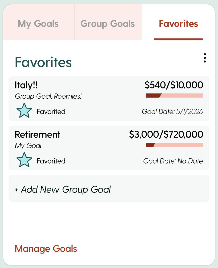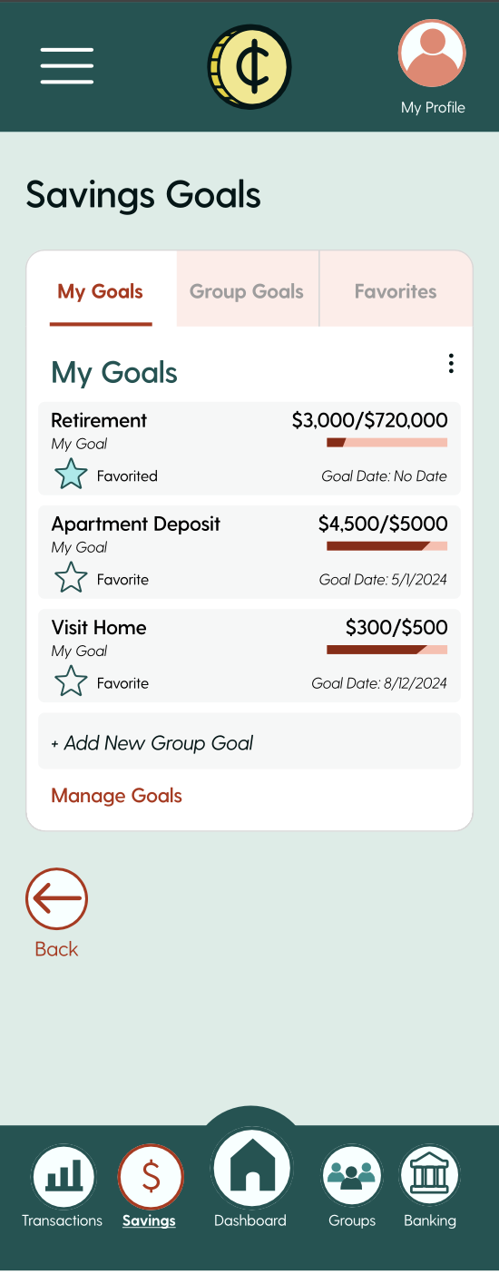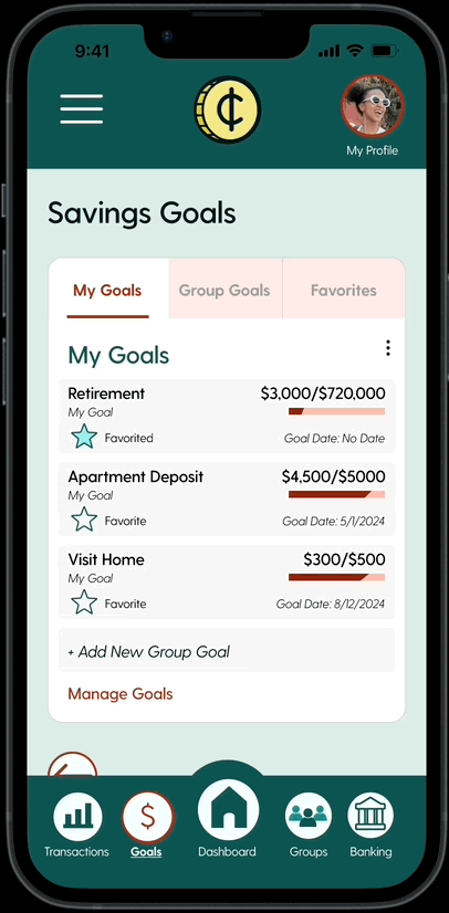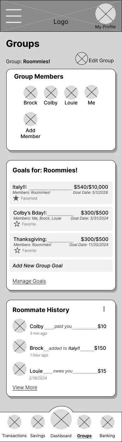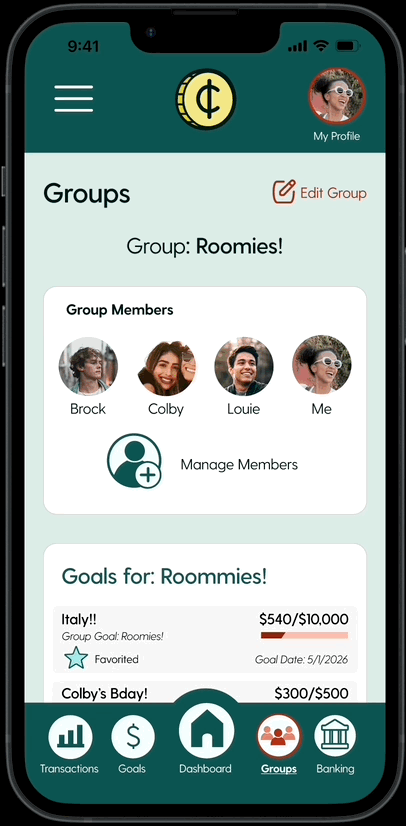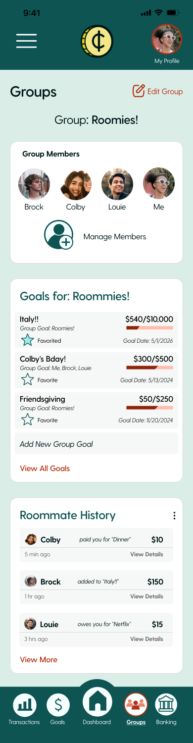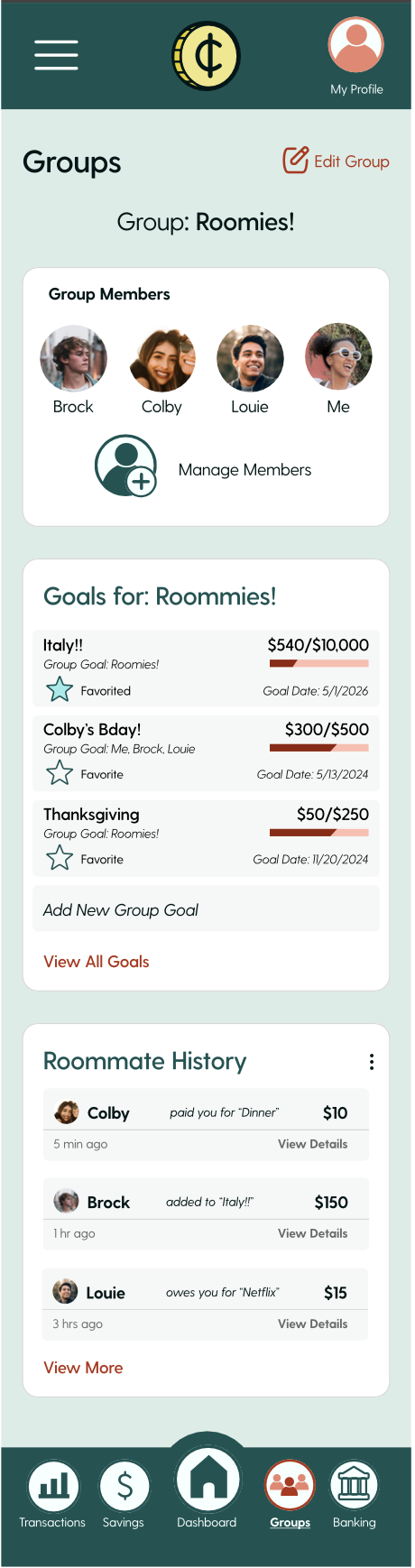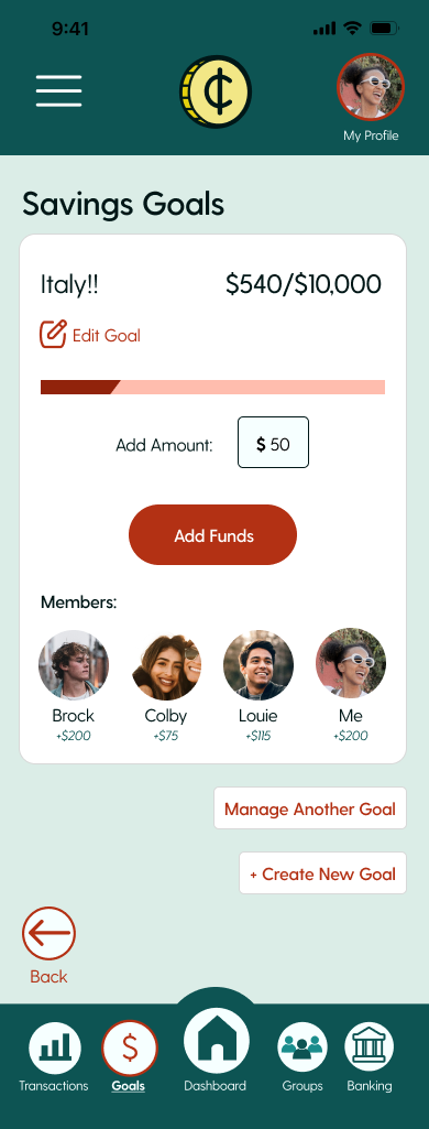 Users can now see how much their group members have added to a group goal. This allows group members to check other roommates progress, as well as their own, and ensure not one person is adding to the fund alone.