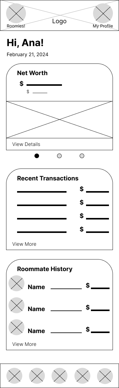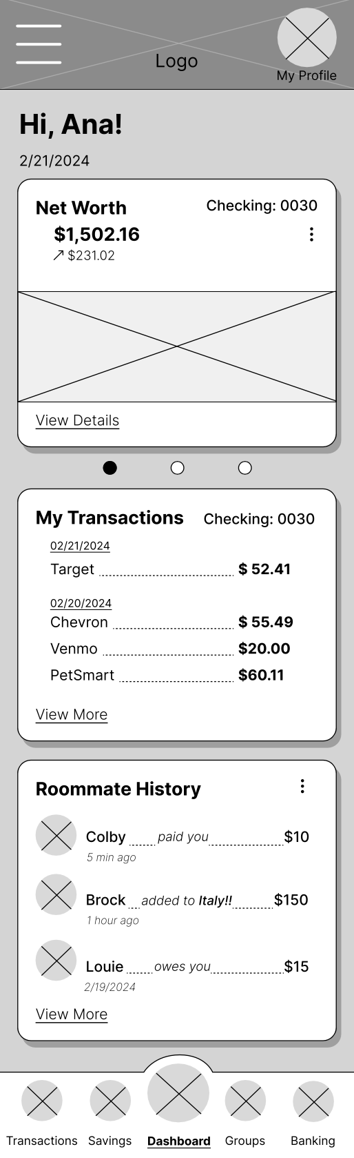 The transactions page will allow the user to search transactions and view their spending habits in one spot.