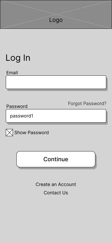 For immersion purposes, an iPhone header was added to the top of the wireframes. This allows for prototyping to be more accurate, as well as gives more space to the design to accommodate the header.