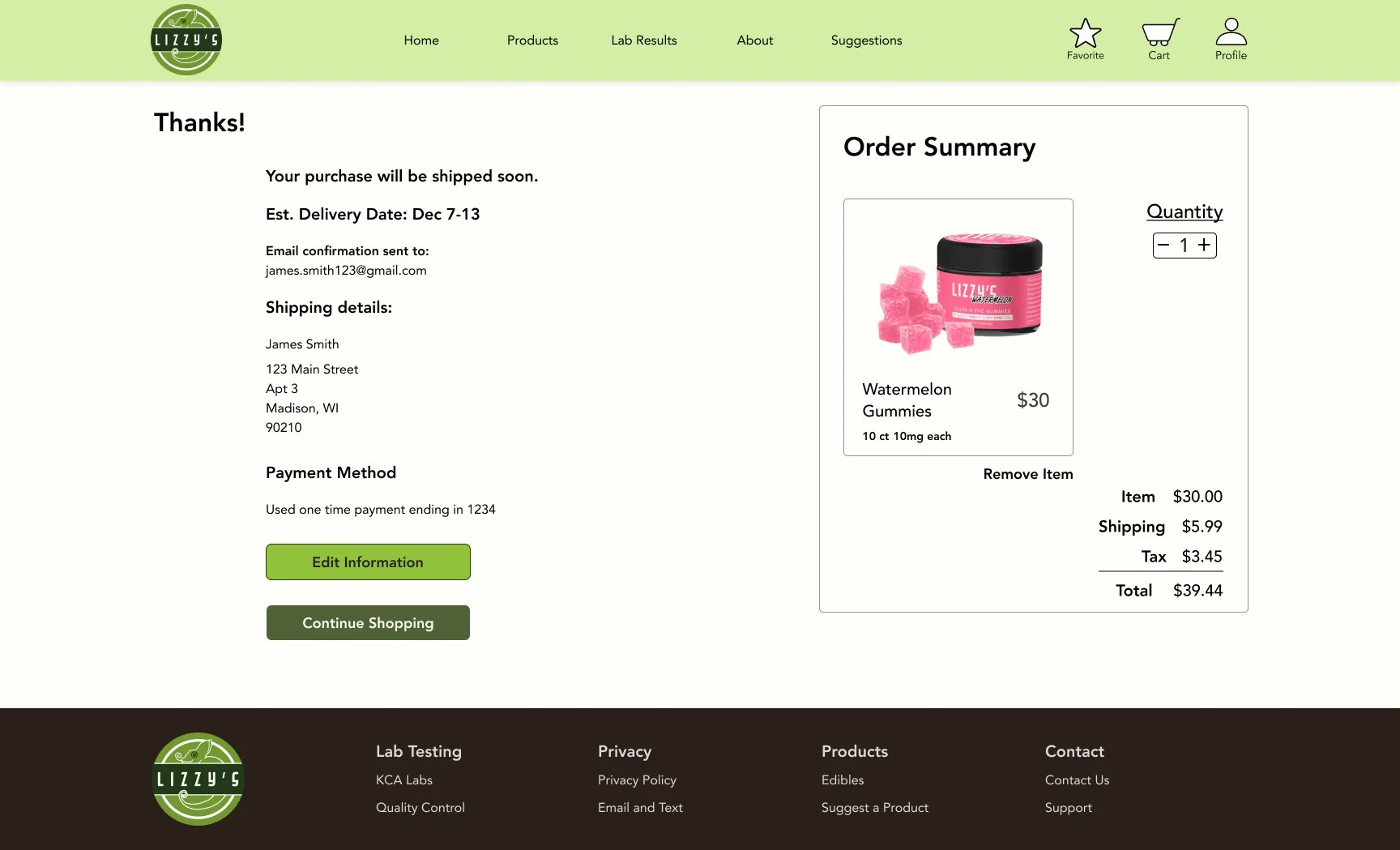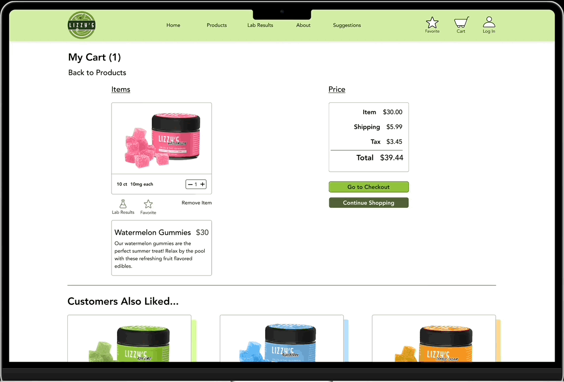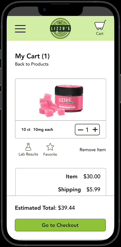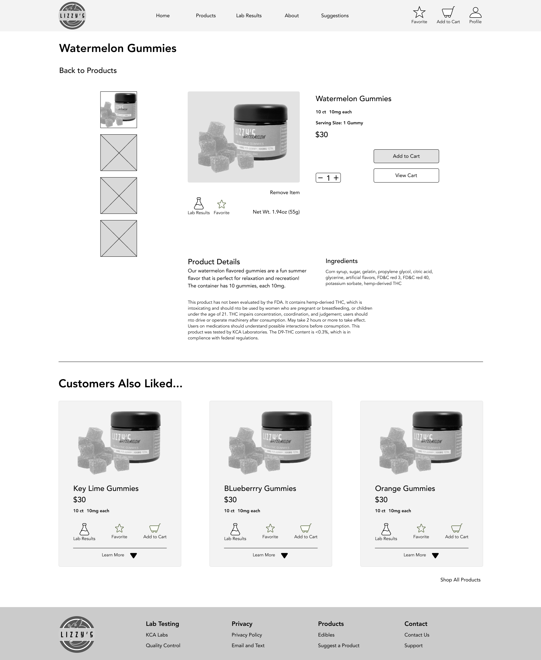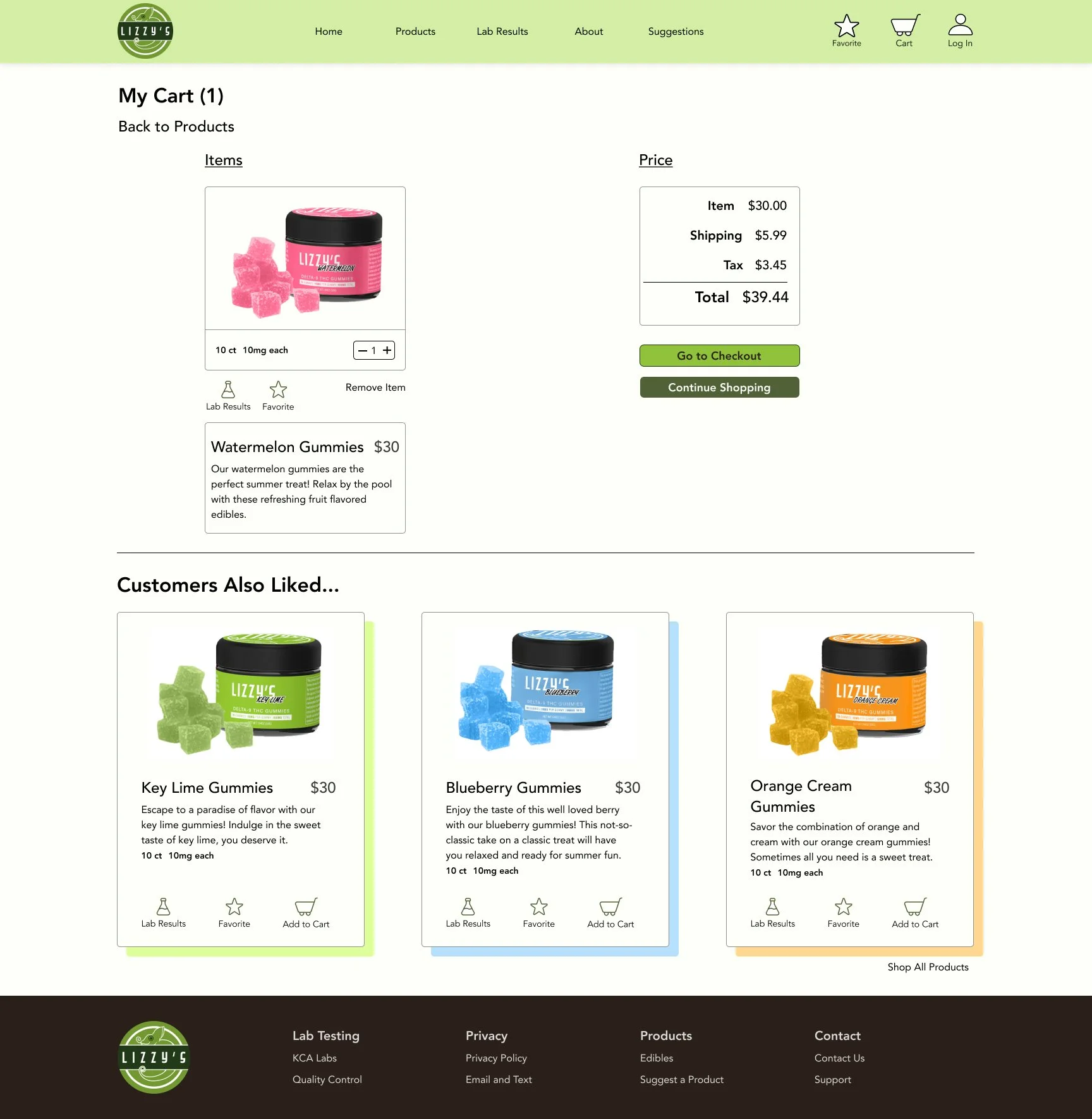 Lab Results page, to tell users what is in the Lizzy’s products and how it was tested.