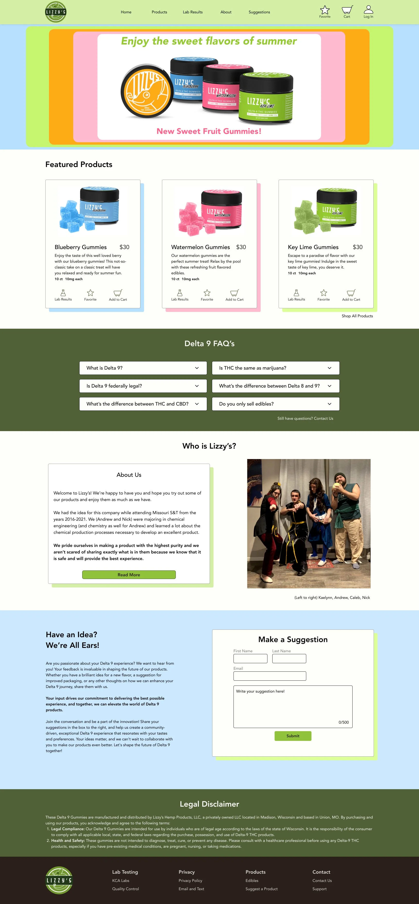 A responsive website for a local business dedicated to honesty with ingredients for their hemp-based THC/Delta 9 infused edibles.