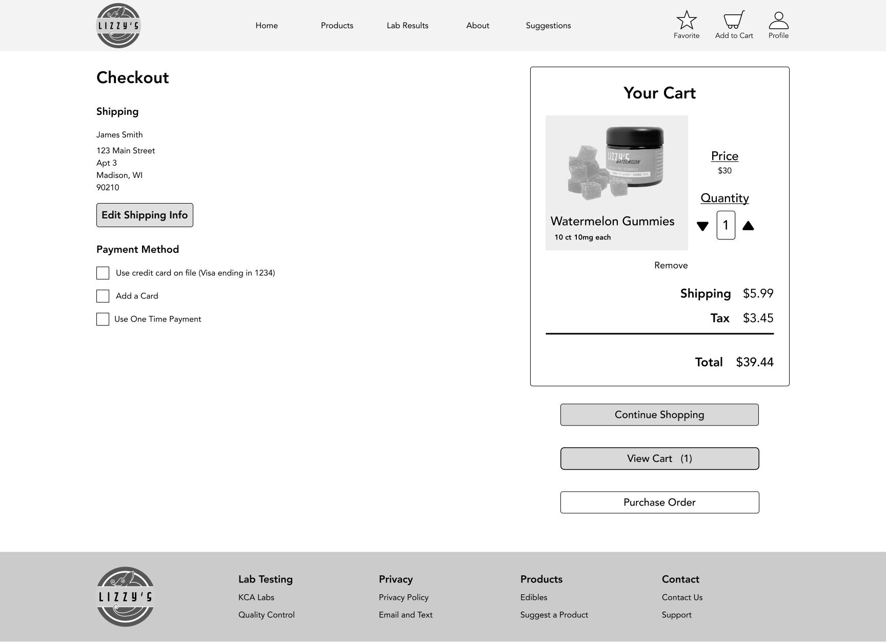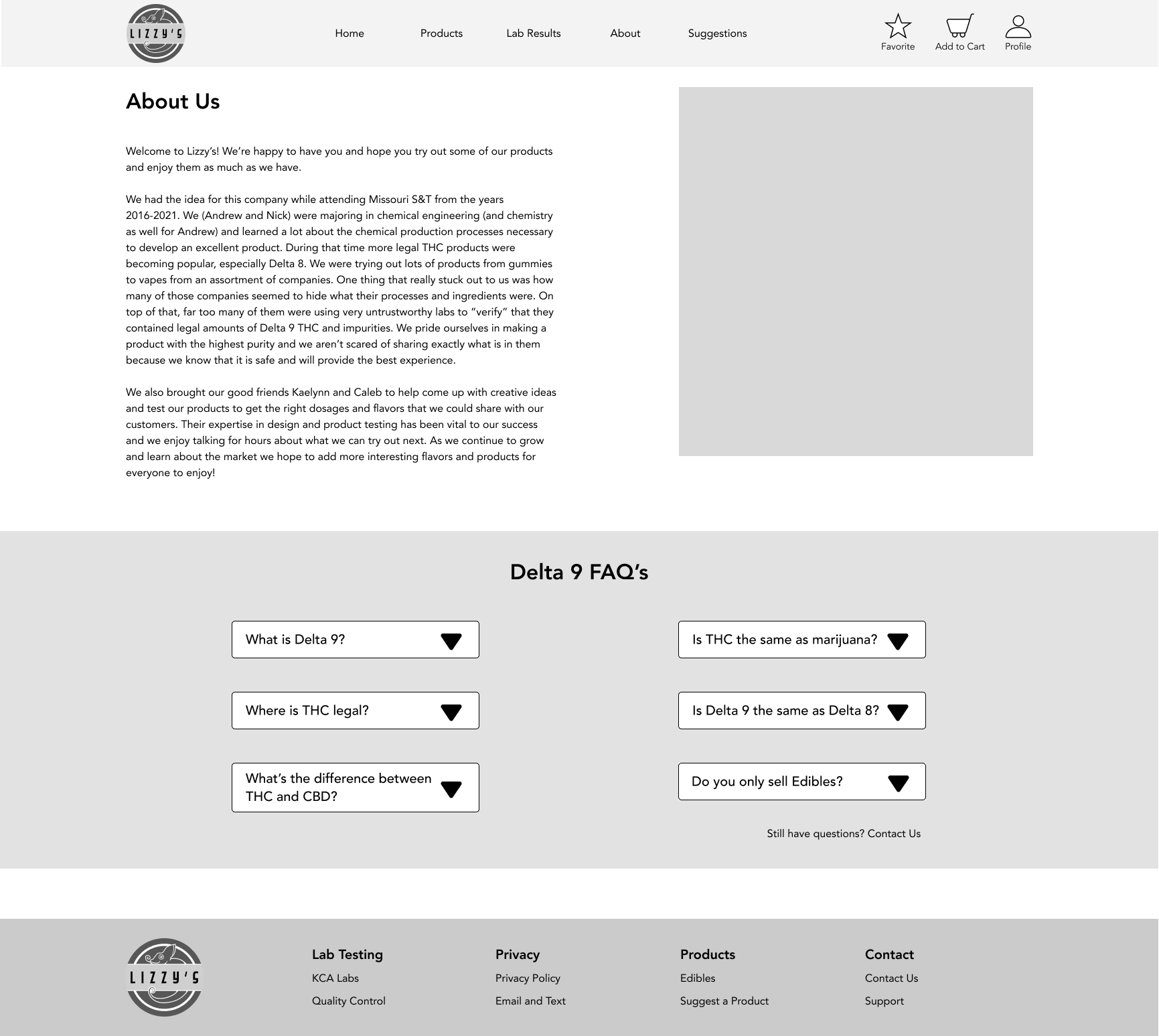 The purpose of the following layouts is to provide an easy to use, trusting website for users. Lizzy’s really focuses on transparency, information, and a rapport between users and the company.