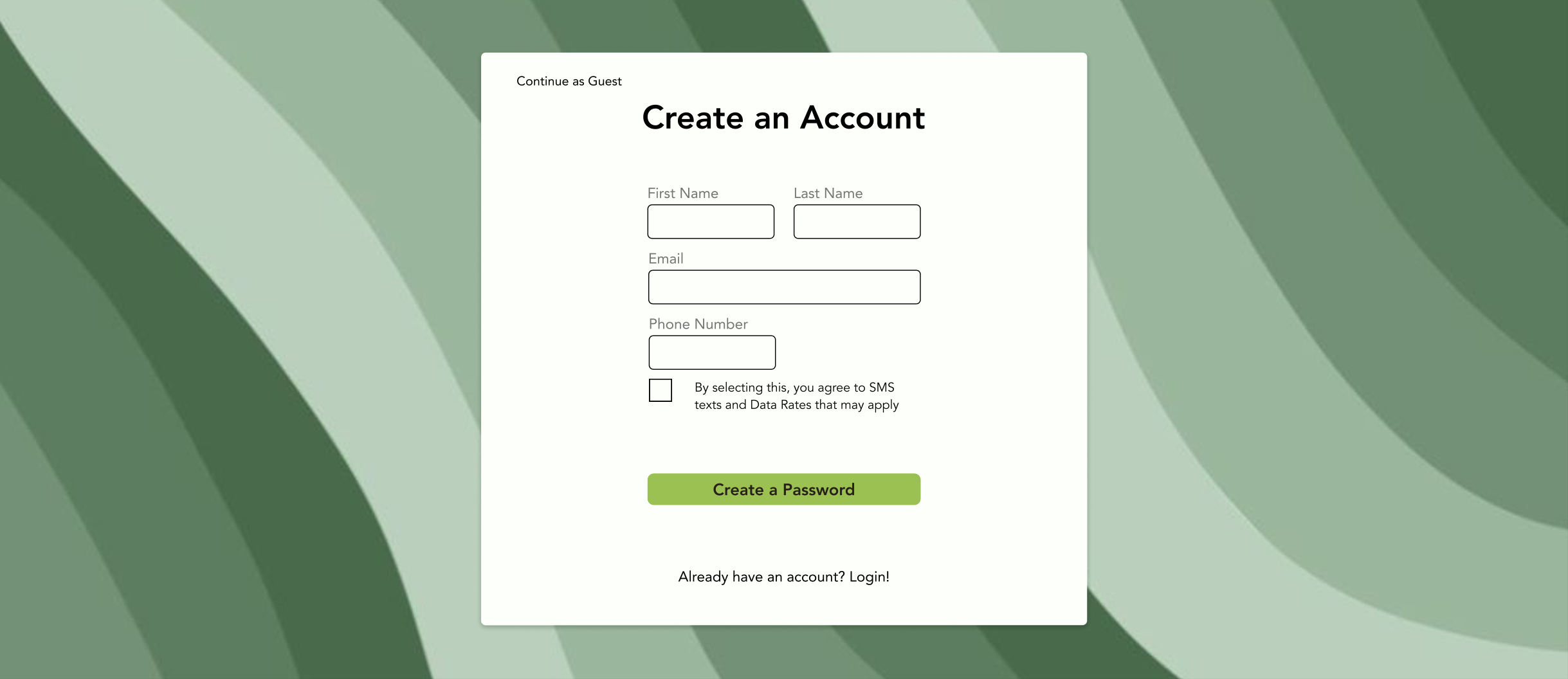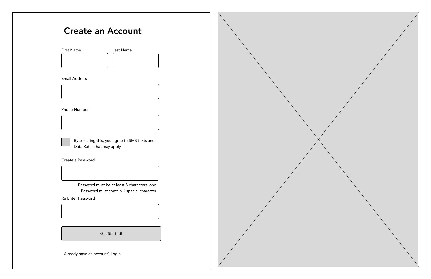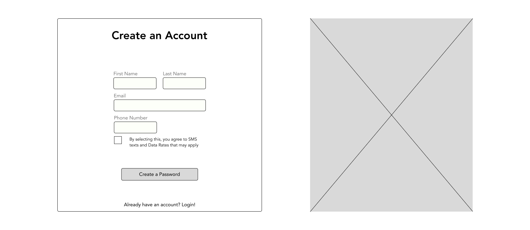Create a Password was added to alleviate the Create an Account page, as there was enough information on that page already. Dedicating a full page to password creation allows the user to pay more attention to their password and ideally eliminate some user error. Click arrows to scroll through wireframe pages.