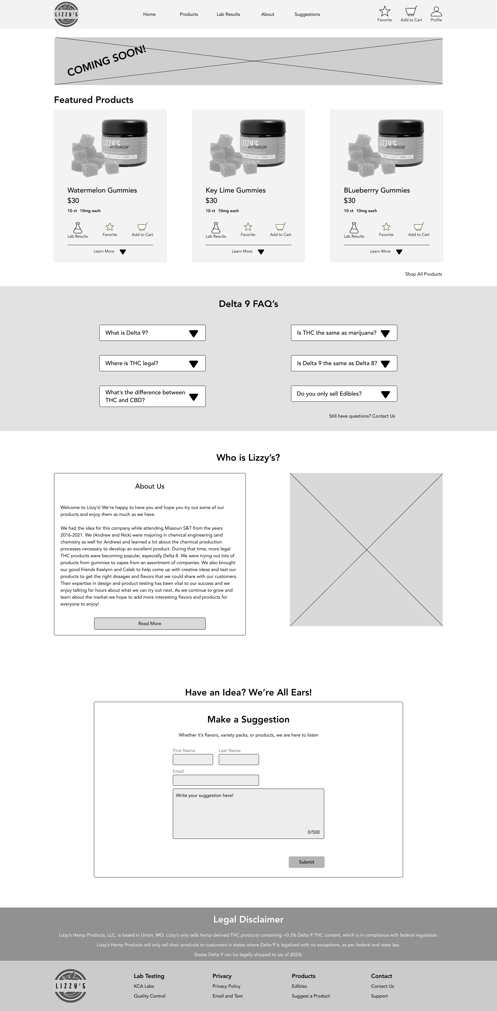Lizzy’s currently does not have a website or storefront, and is only sold word-of-mouth. The goal of this website is to increase traffic and users, as well as get their name known. The product itself needs to be transparent, honest, and real with its clientele.